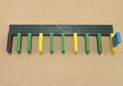 مثال 1: با مهره های فلزی مساله ضرب را به دانش آموزان آموزش دهید. مراحل اجرای فعالیت در کلاس:- مهرههای فلزی را از داخل پکیج بردارید و رنگهای مشابه را کنار هم قرار دهید.