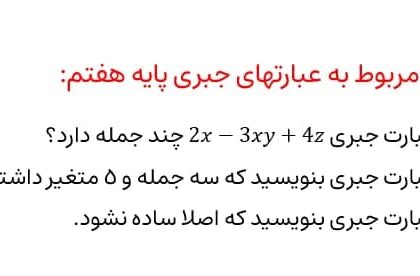 عبارت جبری و چگونگی آموزش آن برای دانش آموزان پایه هفتم